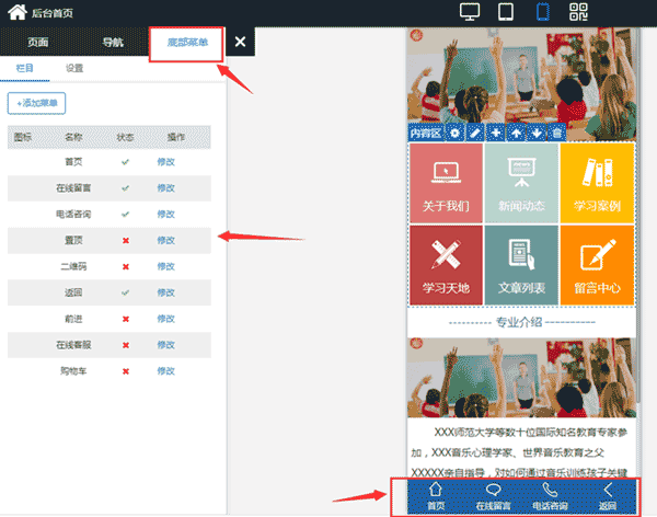 第三步:外围知名博鱼官网编辑。编外围知名博鱼官网内容包括包括:banner图片、网站栏目。云指建站的样板已经有自带的栏目了,大家根据自己的需求来修改一下就可以了。一般情况下,手机企业站的栏目包括:关于我们、产品展示、新闻动态、在线留言、联系我们等。
