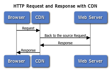 客户端浏览器先检查是否有本地缓存是否过期,如果过期,则向CDN边缘节点发起请求,CDN边缘节点会检测用户请求数据的缓存是否过期,如果没有过期,则直接响应用户请求,此时一个完成http请求结束;如果数据已经过期,那么CDN还需要向源站发出回源请求(back to the source request),来拉取最新的数据。CDN的典型拓扑图如下: