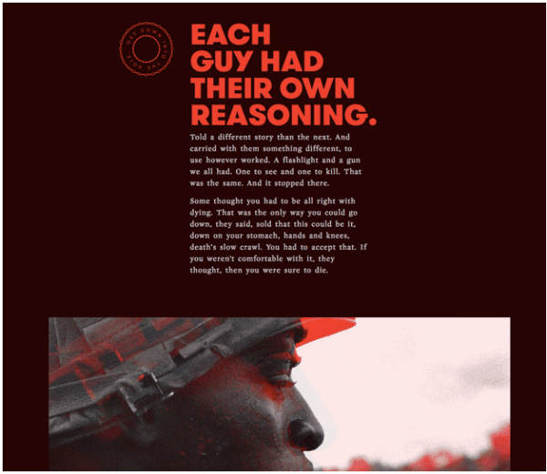 当然,单页导航对于服务于单一目的的网站来说比大型的复杂网站更直接些。如果你的目标是讲故事,那么单页网站也是视觉叙事的最好选择。