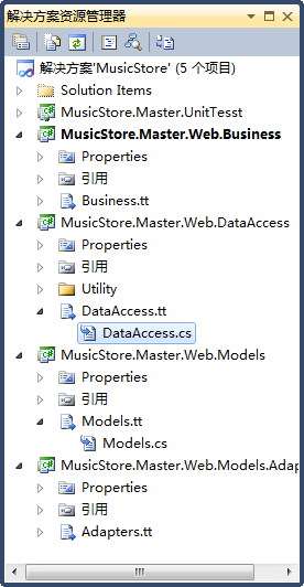 我们一般的项目多是分了简单三层,有了上面的一些经验,你应该会想。要是只写三个类.tt文件,就能自动给我们把整个三层维护好那多令人兴奋啊!确实,我就是这样做了一个项目给大家分享一下: